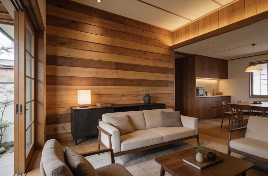 Для просторных помещений с высокими потолками подойдут длинные панели, позволяющие минимизировать количество стыков и создать визуально цельную поверхность. Ширина вагонки также играет важную роль: узкие доски визуально увеличивают пространство, а широкие панели делают интерьер более спокойным и монолитным.