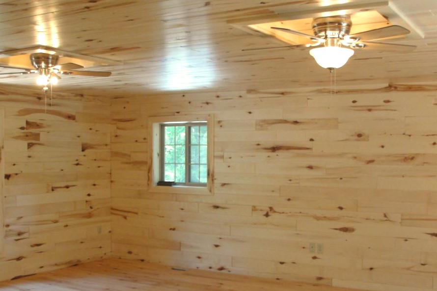 •  Для жилых комнат подойдёт сосновая или еловая вагонка толщиной 12–14 мм. Она лёгкая, недорогая и проста в монтаже.